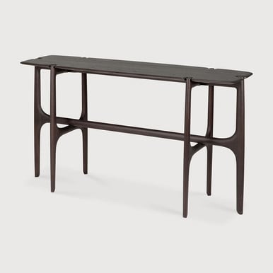 Ethnicraft Dark Wood Console Table – PI Collection The PI collection celebrates the natural elegance of wood with a design that embraces the strength and organic lines of nature. Each console table is handcrafted to respect the unique character of the wood, adding sleek sophistication to any space. Designer: Alain van Havre Material: Dark Brown Tainted Teak with a varnished finish Dimensions: Medium: Width 140 cm x Depth 42 cm x Height 78 cm Why buy from 4 Living? With over 20 years of reliable, 5-star service, we offer free premium home delivery with optional assembly to make your shopping experience seamless and enjoyable.