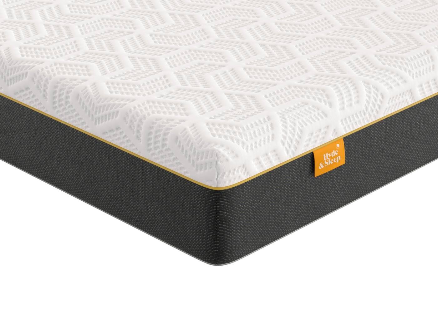 Specifications: Firm comfort grade for orthopaedic support Three supportive layers of cushioning Featuring Aurora® airflow foam for breathability Ultra lightweight knitted cover Expertly profiled base foam, zoned to support your body Delivered rolled, for your convenience Made in the UK Try it for 100 nights with our Comfort Guarantee Rest easy with a 5-year guarantee There’s foam, and then there’s Aurora® foam Unlike standard foam, Aurora® is designed with an open cell structure, which allows air to flow freely through it. The result? A cooler night’s sleep for you, and lasting hygiene for your mattress. Cosy nights, guaranteed An ultra-modern look, with heaps of cosy comfort. This mattress is wrapped in a soft knitted cover, which is also super breathable. You experience exceptional comfort, while your mattress stays fresh night after night. Unique support, just for you Enhanced support where you need it most. Our base foam is expertly sculpted to cushion the most sensitive areas of your body while you sleep. This intricate shaping also enhances airflow through the mattress, so you can enjoy long-lasting freshness. Looking for more information on how to care for your Hyde & Sleep mattress, take a look at our guide. Mattress Size Guide