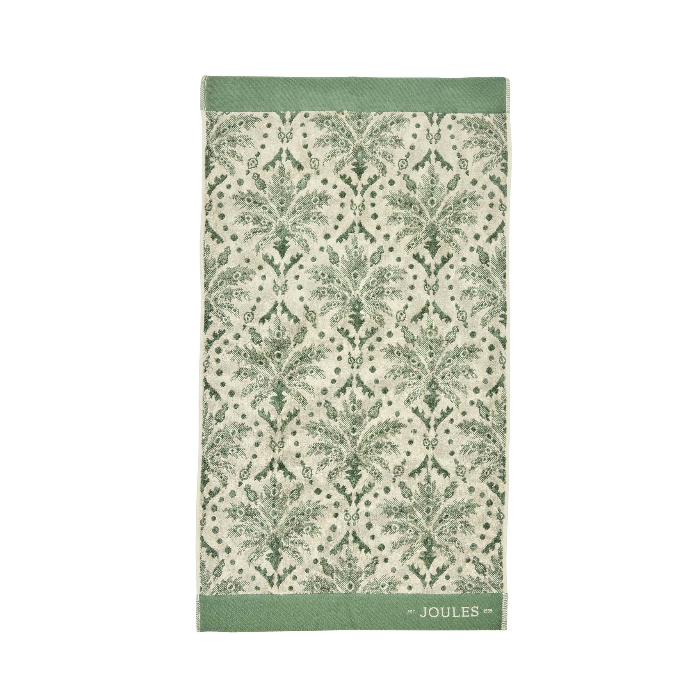 Palm Geo Hand Towel Green pIf your bathroom is the least inspiring room in your home, choosing the right accessories are a great way to instantly lift it beyond the ordinary. This towel introduces a vintage-inspired palm print for a natural feel that is perfect for the bathroom. Its soft leafy hues of green and creme will add a subtle touch of colour, but remain grounded in a neutral theme. It’s crafted from fast-absorbing terry fabric and uses a combed cotton yarn, making it both cosy and practical. It’s finished with contrasting colour block ends and comes in three sizes (hand towel, bath towel and bath sheet). p