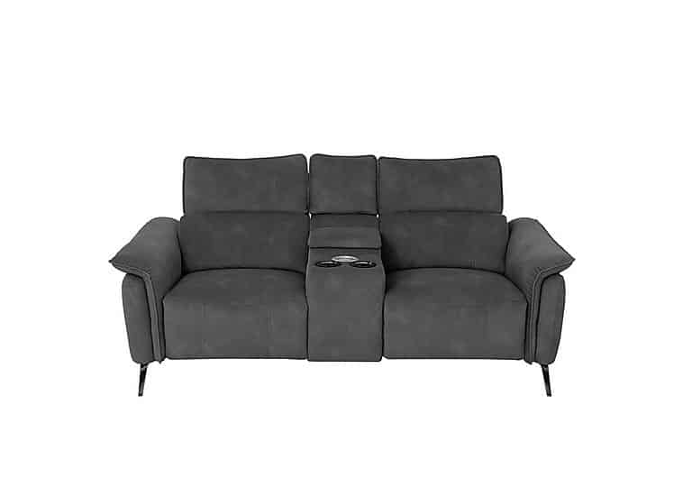 This two- seater power recliner sofa is packed with high- tech features – power recliners and telescopic headrests, pocket sprung seats, and even a smart console unit with gadgets aplenty. Why you’ll love it The smart console unit in this power recliner sofa makes it even easier to chill out. Relaxed contemporary style. Power recliners and power telescopic headrests for head- to- toe comfort. Smart console unit has multiple charging points, cooling cup holders and a storage space. Supportive pocket sprung seats and superb lumbar and arm cushioning. Upholstered in a high- quality fabric in a choice of colours. Slender metal legs have a gunmetal grey finish. Also available without the smart console unit, power recliners and power headrests. Handmade exclusively for Furniture Village. This 2- seater fabric power recliner sofa with smart console unit is part of the Jude range. What you need to know Medium comfort level. Seat suspension: sinuous spring. Seat cushioning: pocket spring, foam and fibre. Seat cushions are fixed. Back suspension: webbing. Back cushioning: fibre. Back cushions are fixed. Feet are removable. The non- recliner version of this sofa does not have telescopic headrests. Please allow time for the recliner mechanism to ease. Minor gaps are necessary to ensure ease of motion and may be exaggerated depending on floor type. Some fabrics can show wear on areas of more use or in direct sunlight. Fixed seat and back cushions require smoothing and straightening regularly. To smooth and straighten fixed cushions, punch the back cushion’s top two corners and the seat cushion’s outer two corners, and pinch outwards. Please read our upholstery care guide for more advice.