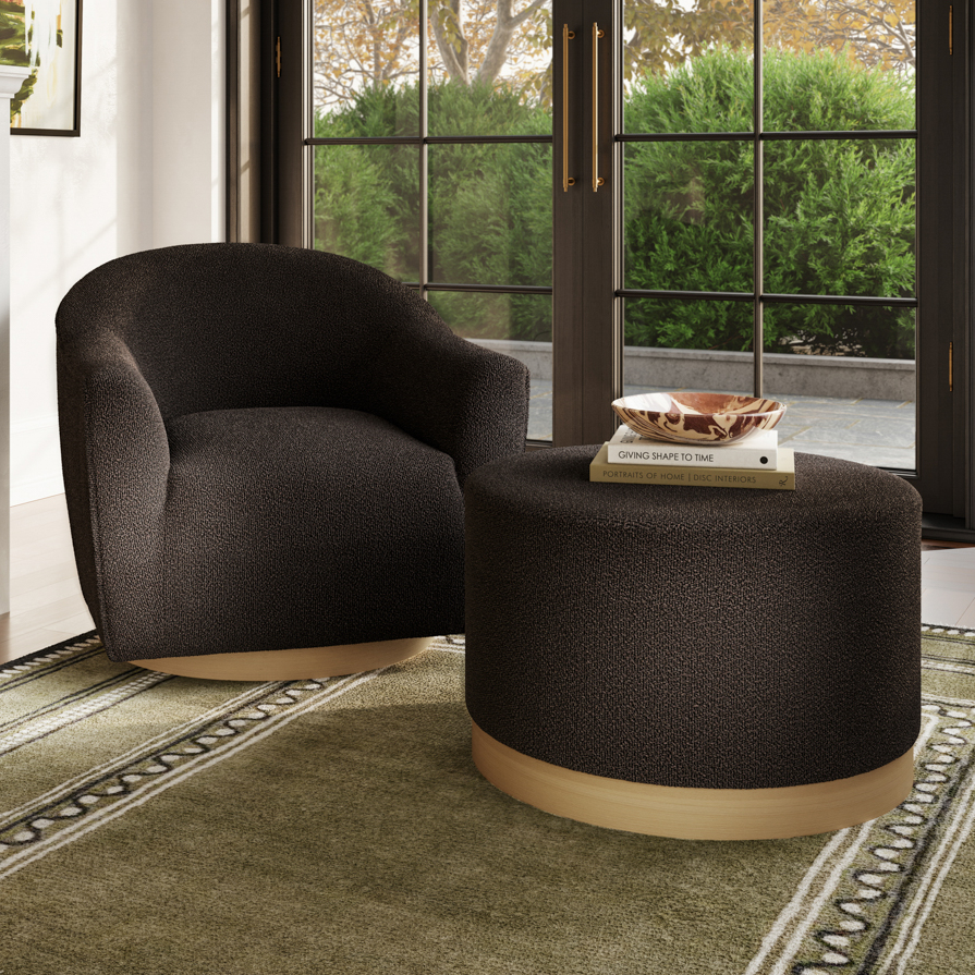 LPD Daphne Black & Natural Swivel Chair Unwind in luxurious comfort with the LPD Daphne Black & Natural Swivel Chair . This captivating piece combines on-trend boucle fabric with a natural wood effect base for a look that’s both stylish and inviting. Plush black boucle fabric offers a luxuriously soft and textural feel, adding a touch of contemporary flair to your living space. Natural wood effect base creates a beautiful contrast and a touch of warmth, complementing a variety of d cor styles. 360 swivel mechanism allows for effortless movement and conversation flow, making it perfect for entertaining or relaxing. Surprisingly easy to maintain, the black boucle fabric can be cleaned with a damp cloth, while the natural wood effect base can be kept dust-free with a soft brush. Delivered fully assembled , the LPD Daphne is ready for you to enjoy the moment you receive it. Indulge in unparalleled comfort and modern style. Order your LPD Daphne Black & Natural Swivel Chair today and create a haven of relaxation in your home. Dimensions : Depth : 80.5cm Width : 75cm Height : 72cm