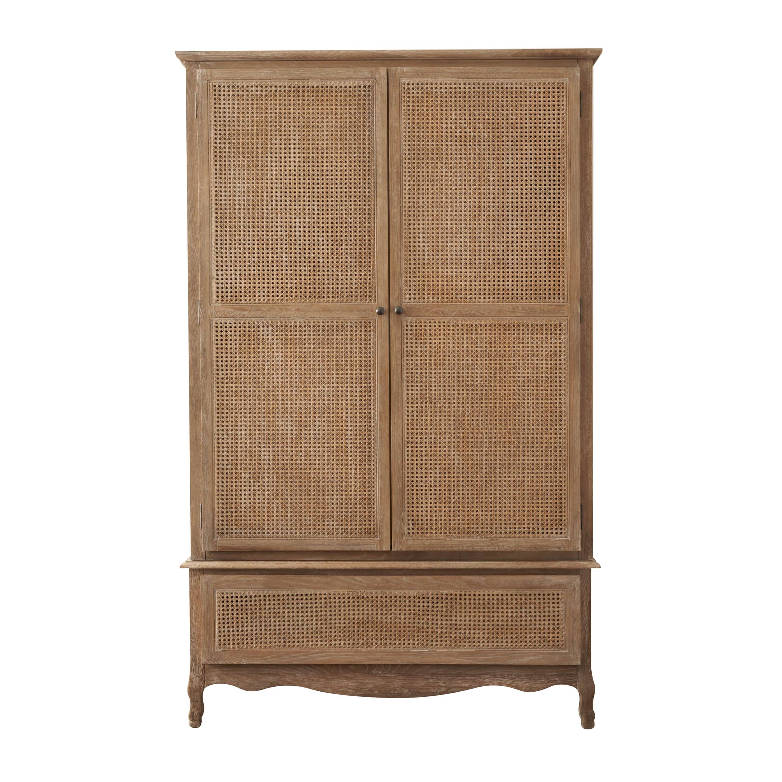 Designed to be strong and sturdy, this stylish wardrobe is full of natural charm. Crafted from weathered oak with rattan panelling and cabriole legs, this beautiful wardrobe offers generous storage with a large hanging rail and a deep drawer with dovetailed joinery. View In-Store Crafted from a combination of solid, sustainable oak, rattan panelling and veneer Boasting zinc alloy handles with antique plating Featuring cabriole feet styling Due to the handcrafted nature of the weathered oak finish, no two pieces will be identical Part of our Sienna Rattan collection