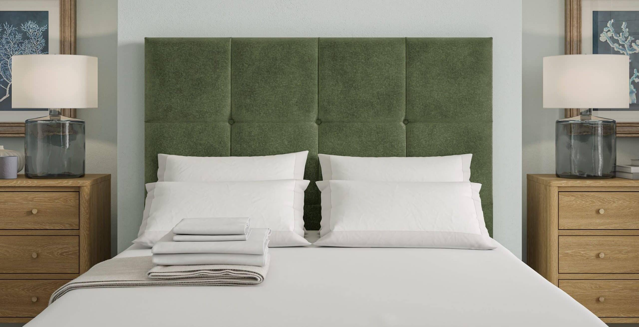 Contemporary style meets exquisite craftsmanship in the Sleepeezee Belmont headboard. Its quilted design is adorned with characterful button detailing, with sumptuous padding for an irresistible pillow back feel. Choose your perfect finish from our range of fabric options, with a wide palette to browse. Our micro chenille Oxford upholstery offers a refined take on traditional velvet, or select our bouclé Copenhagen fabric with its touchable textured finish for a soft natural look. This headboard is made exclusively for Feather & Black by Sleepeezee, Royal Warrant holders and suppliers to HRH The Prince of Wales since 1985. A Royal Warrant demonstrates the highest standards of excellence, quality and service. Made exclusively for Feather & Black by Sleepezee, Royal Warrant holders Available in a variety of colours and fabrics Luxuriously padded, with quilted stitching and traditional buttoning Full height headboard sits flush to the floor Available in sizes single to super king Handcrafted in Kent, UK Created from FSC-accredited wood 10-year guarantee Perfect to pair with a Sleepeezee mattress Compatible with all Sleepeezee divan bases