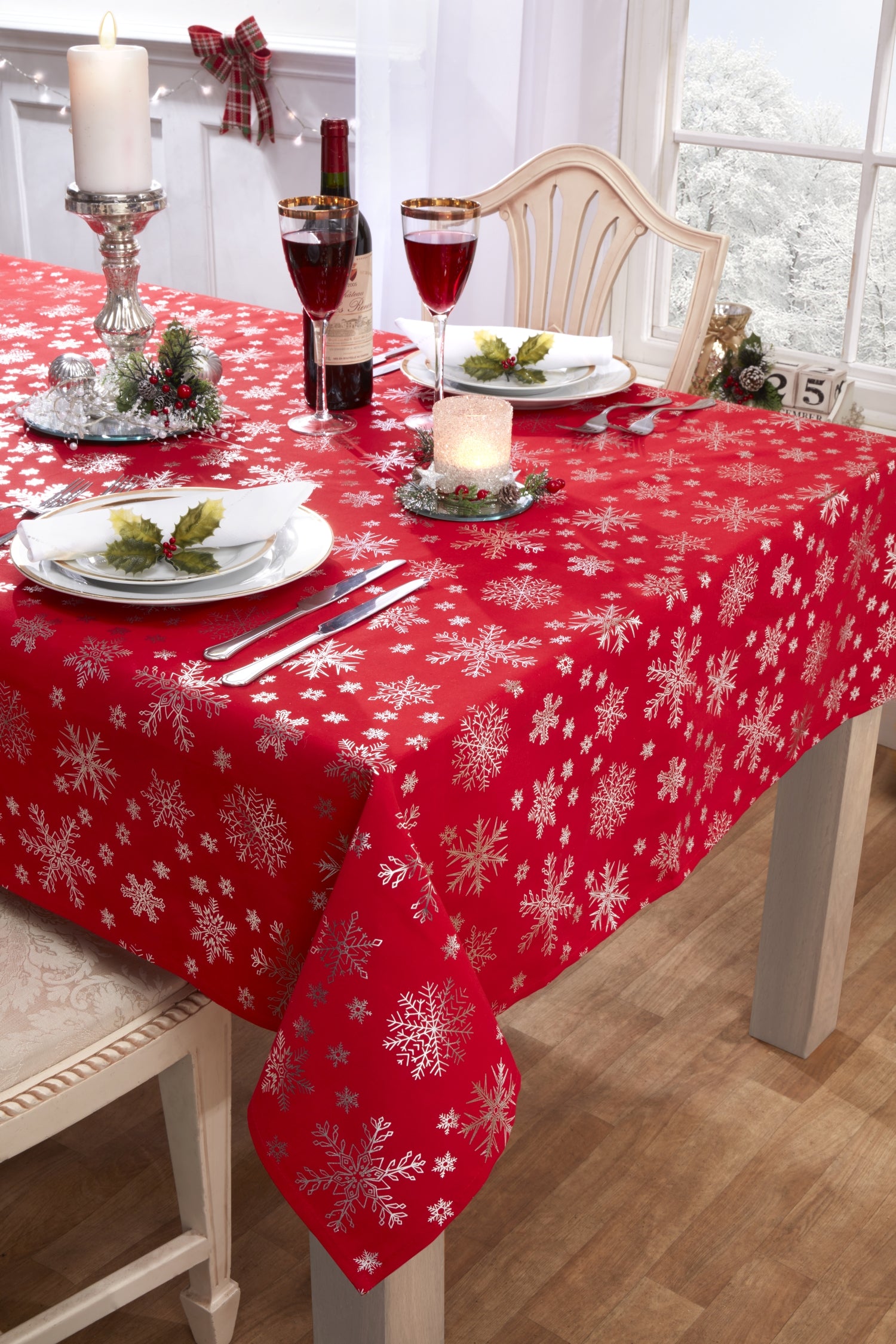 Add an elegant touch to your Christmas table décor with this beautiful Snowflake Foil Print Table Cloth. Crafted from high-quality materials, this table cloth features a stunning snowflake design in a shimmering foil print that will instantly elevate your festive spread. Measuring [size dimensions], this table cloth is perfect for both small family dinners and larger gatherings with friends. The classic white background paired with the silver snowflakes creates a sophisticated and timeless look that will complement any table setting. Not only does this table cloth add a touch of glamour to your Christmas festivities, but it also provides protection for your table from spills and stains. Easy to clean and maintain, this table cloth can be machine washed and ironed for a fresh and crisp look every time. Whether you’re hosting a formal dinner party or a casual get-together, the Snowflake Foil Print Table Cloth is the perfect addition to your holiday décor. Create a magical atmosphere in your home with this stunning piece that is sure to impress your guests and make your Christmas celebrations truly unforgettable.