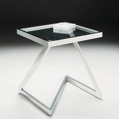 The Storm side tables tempered clear glass top & steel frame stand out in any room. Dimensions: Height: 55 cm Width: 50 cm Depth: 50 cm