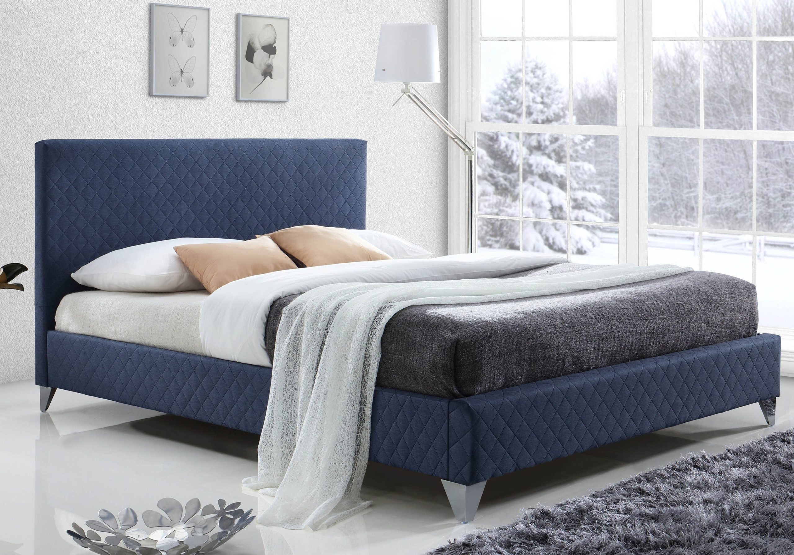 Time Living Brooklyn Fabric Bed Frame The Brooklyn fabric bed frame by Time Living. Contemporary, stylish design with unique stitch detailing throughout the frame, provides a modern look that will suit any bedroom setting. Available in an elegant grey or blue finish along with complementing chrome feet to give that extra touch of luxury. The Brooklyn also features a sprung slatted base which offers a comfortable and even sleeping surface and helps to prolong the life of your mattress.